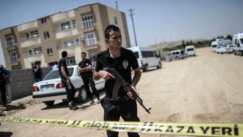 Five people - non-Turkish - were arrested near the border as they tried to cross into the war-torn country, a security source said on condition of anonymity.