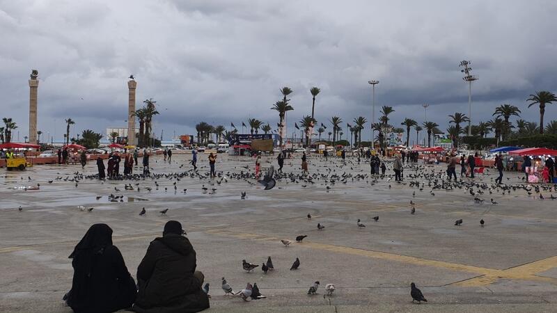 Libyans sit at Martyrs square in the capital Tripoli on March 10, 2020. According to Libyan authorities, not a single case of coronavirus so far has been recorded in the country which faces Italy across the Mediterranean. Libya's centre for disease control, the Tripoli-based CNLM, said it has readied measures to be adopted if the virus infiltrates the country. "The virus has circled Libya from all sides. Our neighbours have confirmed cases so we must monitor the cross-border threat," CNLM president Badreddi