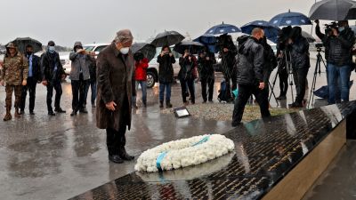 A minute’s silence was observed in front of a plaque honoring victims of the explosion.