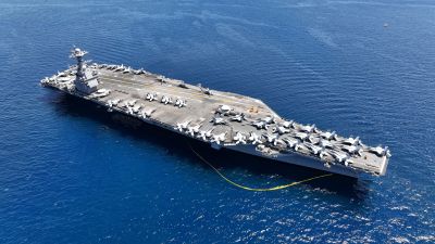 Aerial drone photo of USS Gerald R. Ford (Shutterstock)