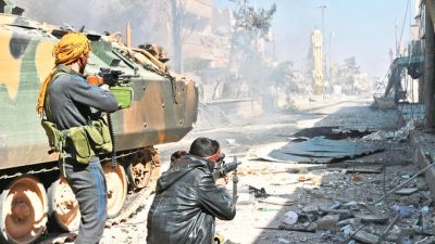 Hundreds of civilians were also killed, including in Turkish airstrikes and shelling. The city is badly damaged.