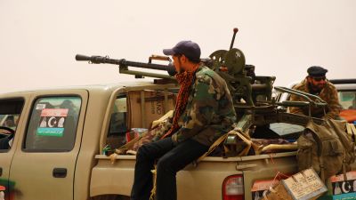 Libyan rebels travel to a battle line where they will fight Colonel Muammar Gaddafi's army. Ajdabiya, Libya. (Shutterstock/ File Photo)
