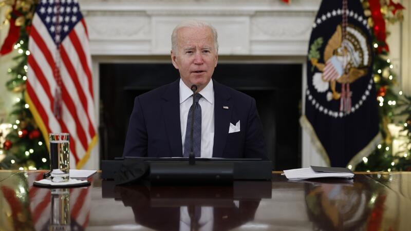 U.S. President Joe Biden delivers brief remarks before a meeting with his coronavirus response coordinator Jeffrey Zients and members of the White House COVID-19 Response Team in the State Dining Room at the White House on December 09, 2021 in Washington, DC. Chip Somodevilla/Getty Images/AFP