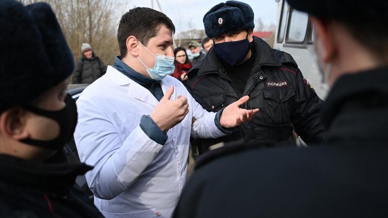 Navalny, who was arrested in January and sentenced to 2 1/2 years in jail for violating terms of his parole from an earlier suspended sentence, has been on a hunger strike for about a week in demand of outside medical attention.