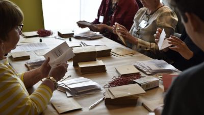 Election officials count pre-votes of the European parliament elections in Helsinki, Finland on May 26, 2019. (Emmi Korhonen / Lehtikuva / AFP)