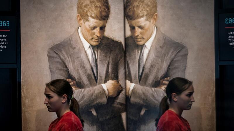 In this file photo taken on April 11, 2013, a student walks past a copy of Aaron Shikler's official portrait of Kennedy which hangs in the White House during a preview of an exhibit devoted to the assassinated US President John F. Kennedy at the Newseum in Washington, DC. Brendan SMIALOWSKI / AFP