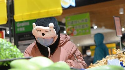 A customer wearing a protective mask shops at a supermarket in Wuhan, the epicentre of the outbreak of a novel coronavirus, in China's central Hubei province. The death toll from the novel coronavirus surged past 900 in mainland China on February 10, overtaking global fatalities in the 2002-03 SARS epidemic, even as the World Health Organization said the outbreak appeared to be stabilising. STR / AFP