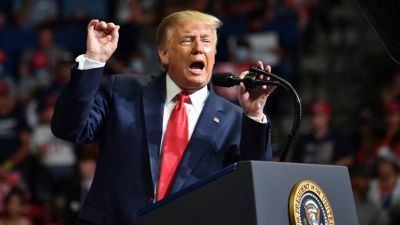 US President Donald Trump speaks during a campaign rally at the BOK Center on June 20, 2020 in Tulsa, Oklahoma. Hundreds of supporters lined up early for Donald Trump's first political rally in months, saying the risk of contracting COVID-19 in a big, packed arena would not keep them from hearing the president's campaign message. Nicholas Kamm / AFP