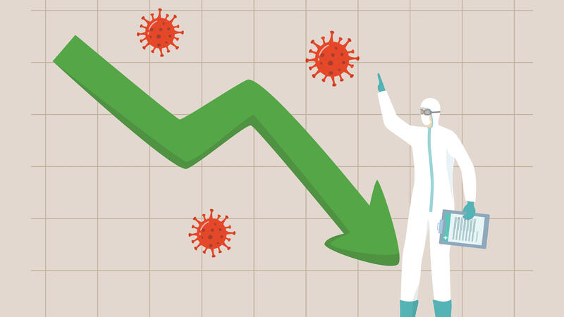 The seven-day moving average for cases Thursday was 41,855, the lowest since 41,360 April 21, according to the CDC. And the deaths average Thursday fell to 345 two days after 334, the lowest since 318 on June 22.