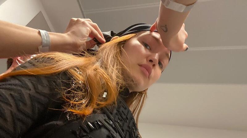 The 25-year-old opened the show wearing a long, black overcoat, midriff-baring corset, a short skirt and a pair of chunky platform hiking boots. The look was completed with brand new red hair, that the new mother says was inspired by Netflix series “The Queen’s Gambit.”