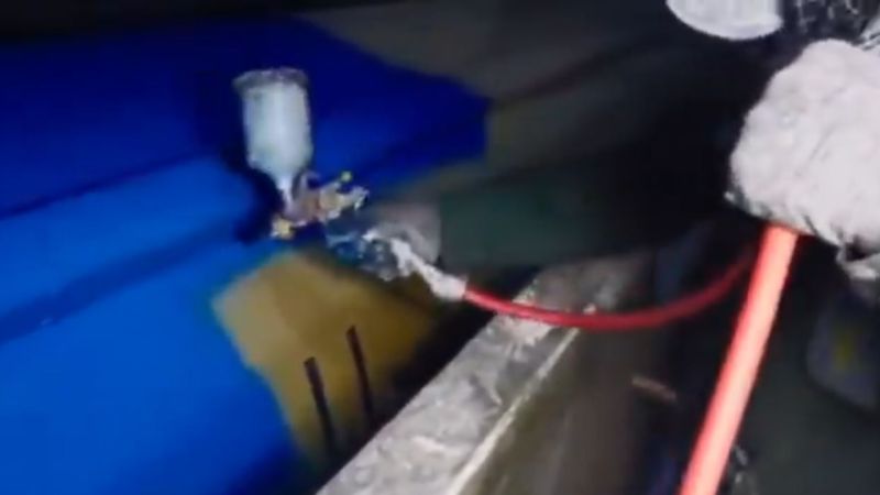 Iran's Embassy in Thailand posted the footage on X and said, "After the pink missile, we painted one blue for our boys! We care for our kids!"