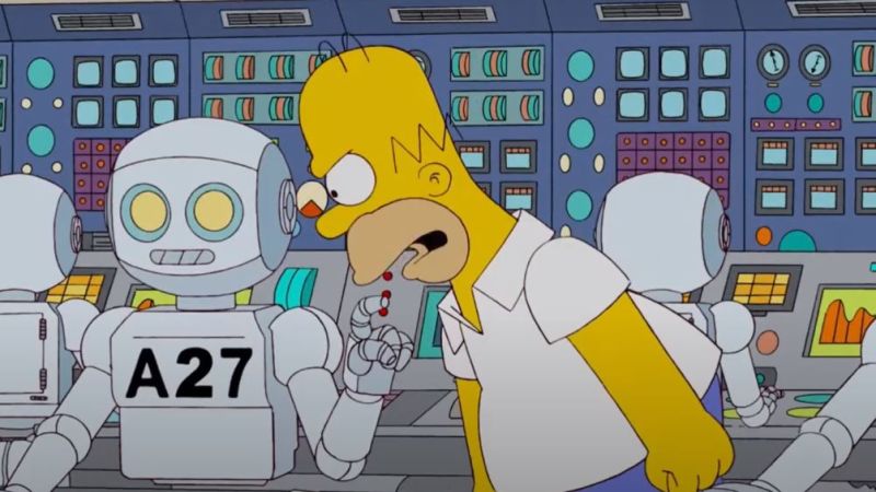 In Season 23, episode 17 of The Simpsons, people can see many robots working instead of humans. In the clip, people can see Homer Simpson packing his work items after being replaced by a robot.