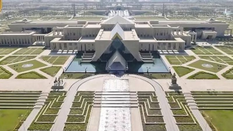 With remarkable features like a "Sacred Lake," which represents wealth and progress, and the main entrance that resembles the "Winged Sun Disk," a symbol of power and protection in pharaonic culture, the palace's design pays respect to ancient Egyptian civilization.