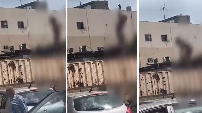 The circulating clip, which Al Bawaba's website cannot publish, shows a domestic worker standing on the top of a building. Then, she started to remove her clothes and dance in front of everyone in the street.