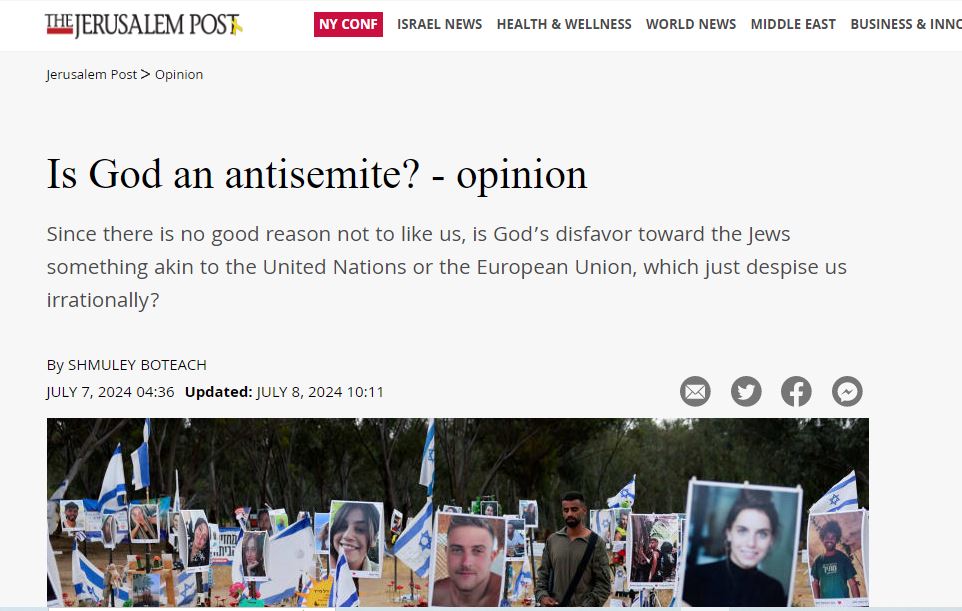 Rabbi Shmuley, who wrote the piece, answered the question on his official X account saying: "No, God is not an antisemite. The very fact that the Jewish people still exist proves it. But it’s high time that he started showing His love rather than just talking about it."