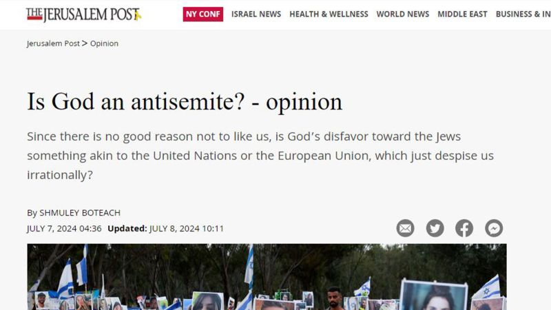 ALBAWABA - Hebrew newspaper The Jerusalem Post is heavily blasted after sharing the latest opinion under the headline "Is God an antisemite?".