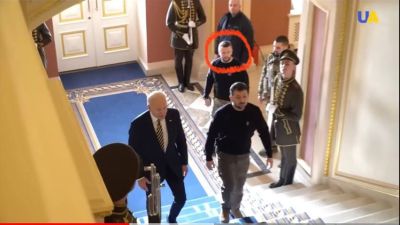At first, one vision of the Ukrainian President appeared while he was climbing stairs with Biden. Then another Zelesnkyy appeared standing on the bottom of the stairs, while the first was heading up.