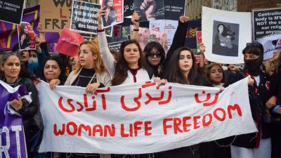 "Women, Life, Freedom". Nearly 3000 people marched for Mahsa Amini and the hundreds of other victims murdered by Islamic Republic of Iran the past three weeks, in Brussels, Belgium on October 1, 2022. (Shutterstock)