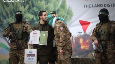 In another striking moment during the exchange, an Israeli captive kissed the heads of two Al-Qassam fighters while standing on the handover platform in Al-Nuseirat refugee camp in central Gaza.