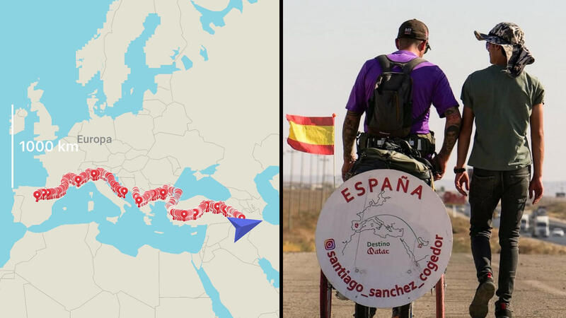 21 days on, no whereabouts of Spanish national #Santiago_Sánchez who started walking from Madrid to Doha to attend Qatar WC2022. His last seen was on Kurdistan Region and Iran border on 2 October and his last post on instgrm was on 1 October posing photos with Kurdish villagers. pic.twitter.com/0G9JTomdkd