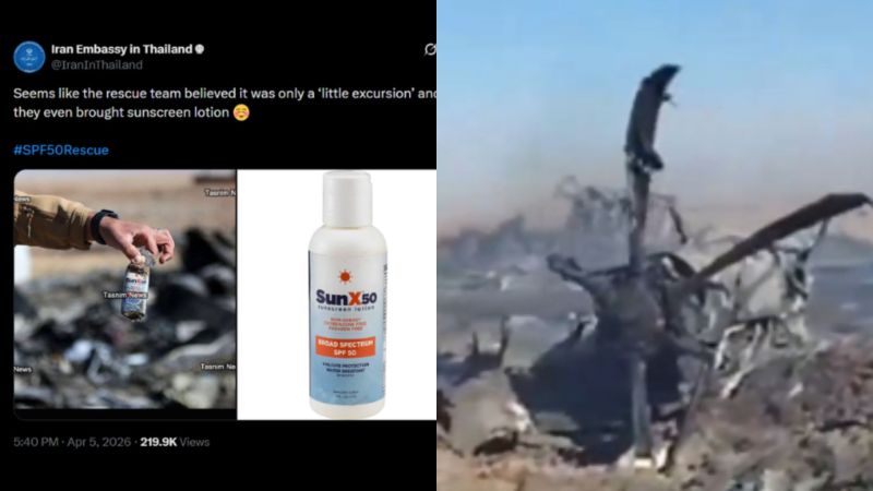 The Iranian Embassy in Thailand took to X (formerly Twitter) with a post featuring a photo of a damaged sunscreen lotion, claiming that one of the downed US Marine soldiers during the rescue mission had a bottle with him.