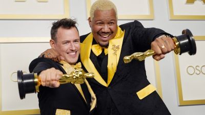 Travon Free and Martin Desmond Roe have won an Oscar for the Best Live Action Short Film for "Two Distant Strangers" on Sunday, April 25, 2021, at Union Station in Los Angeles.