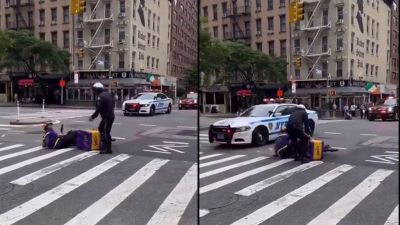 The footage circulated on social media showed a policeman trying to empty one of New York City streets for the passing of Joe Biden's motorcade in the city. Meanwhile, some people on scooters were passing along with a delivery man who was riding his bike.