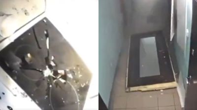 CCTV footage captured on November 28 shows the moment from outside the apartment when the explosion caused the door to fly off.