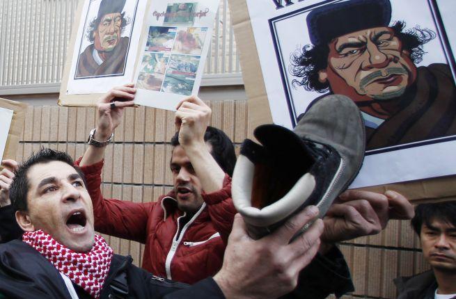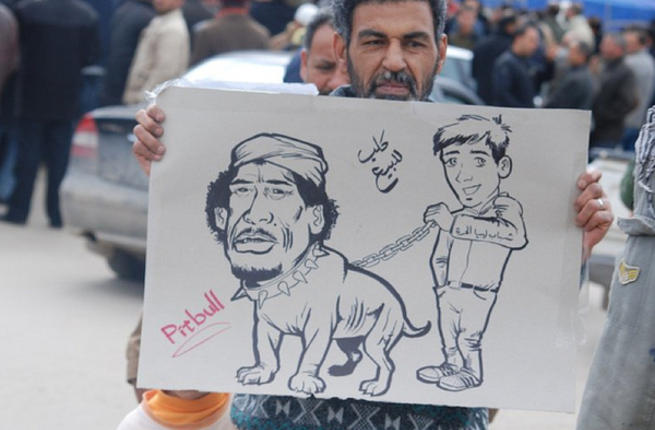 A dirty dog and a creepy raven bird. The Libyan people have no shortage of shameful insults to deliver to this "man".