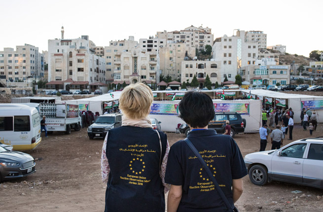 Jordan welcomed independent, international observers from the European Union, China, the Arab League, and others who monitor the electoral process and then present reports on their findings. They are particularly interested in seeing how the new election law, which abolished the one-person, one-vote system, will play out.
