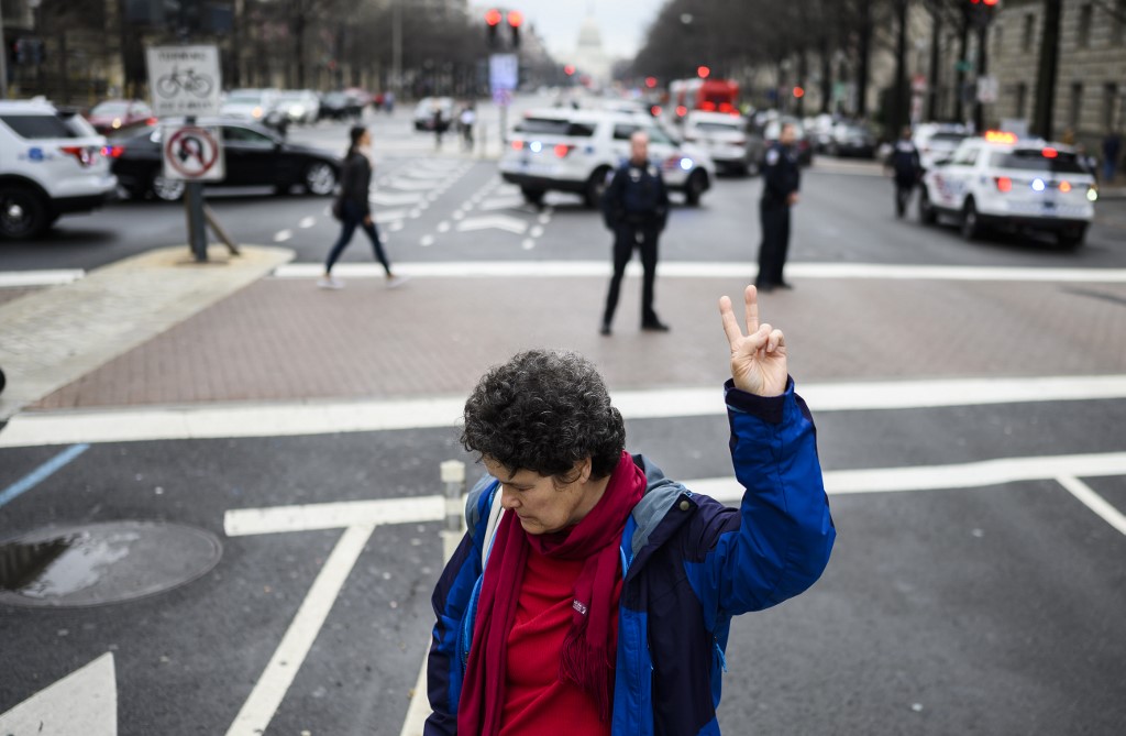 “We will not allow our country to be led into another reckless war,” one speaker outside the White House said.
