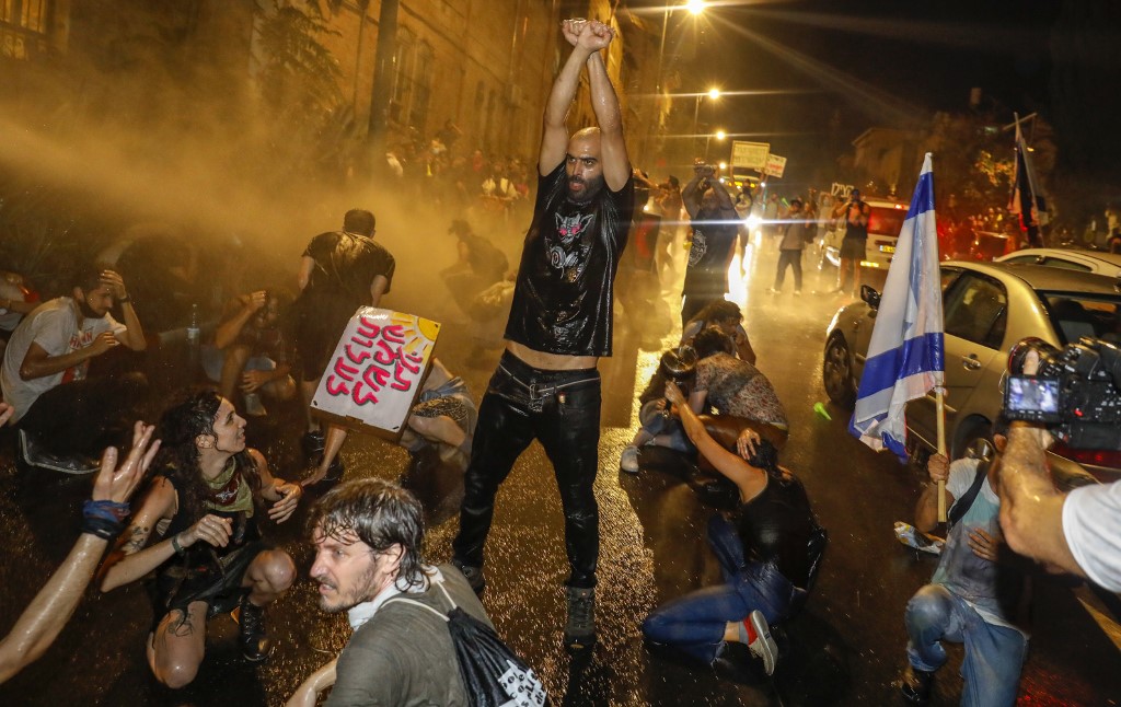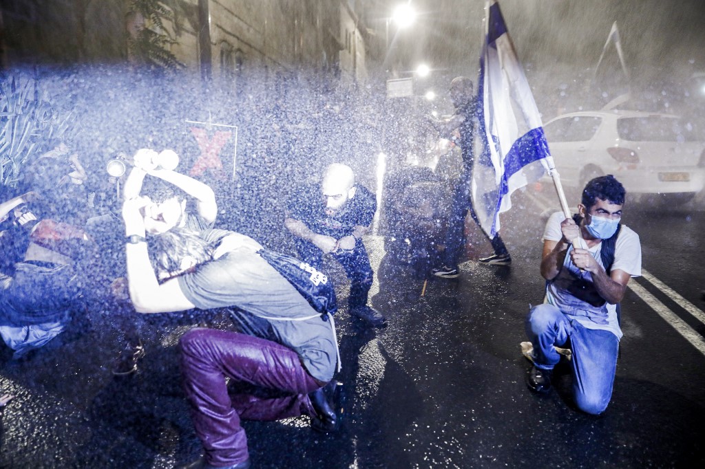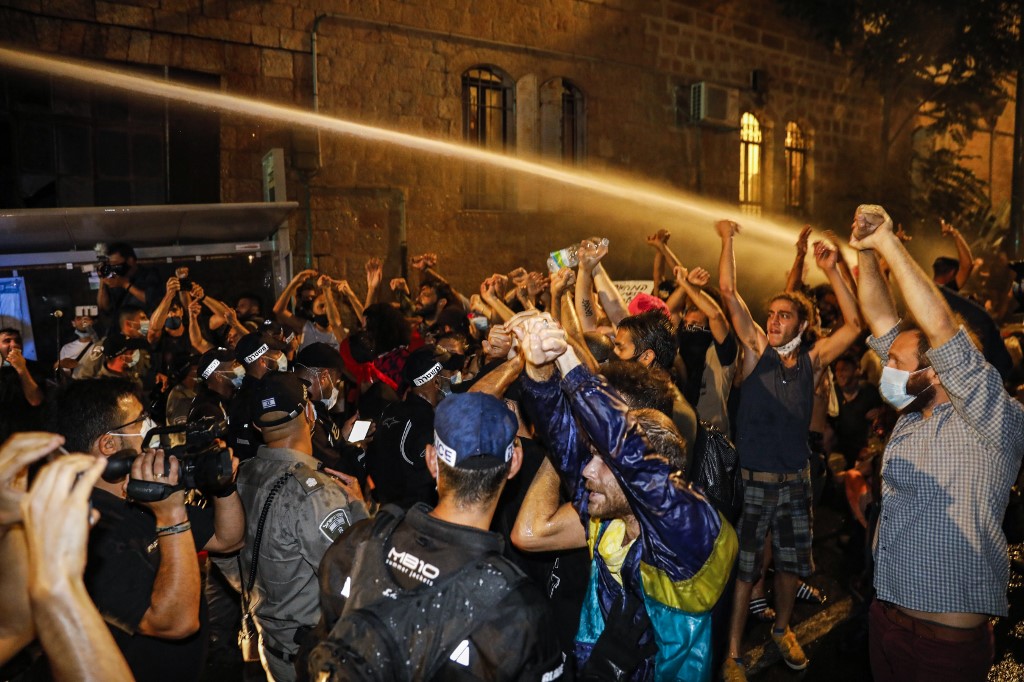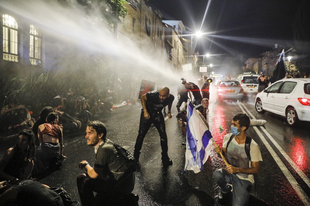 Police allowed demonstrations to take place but took action against unauthorized "disturbances," including road blockages. They used water cannons to disperse demonstrators around Netanyahu's residence as protests mounted against him over alleged corruption and his handling of the coronavirus crisis.