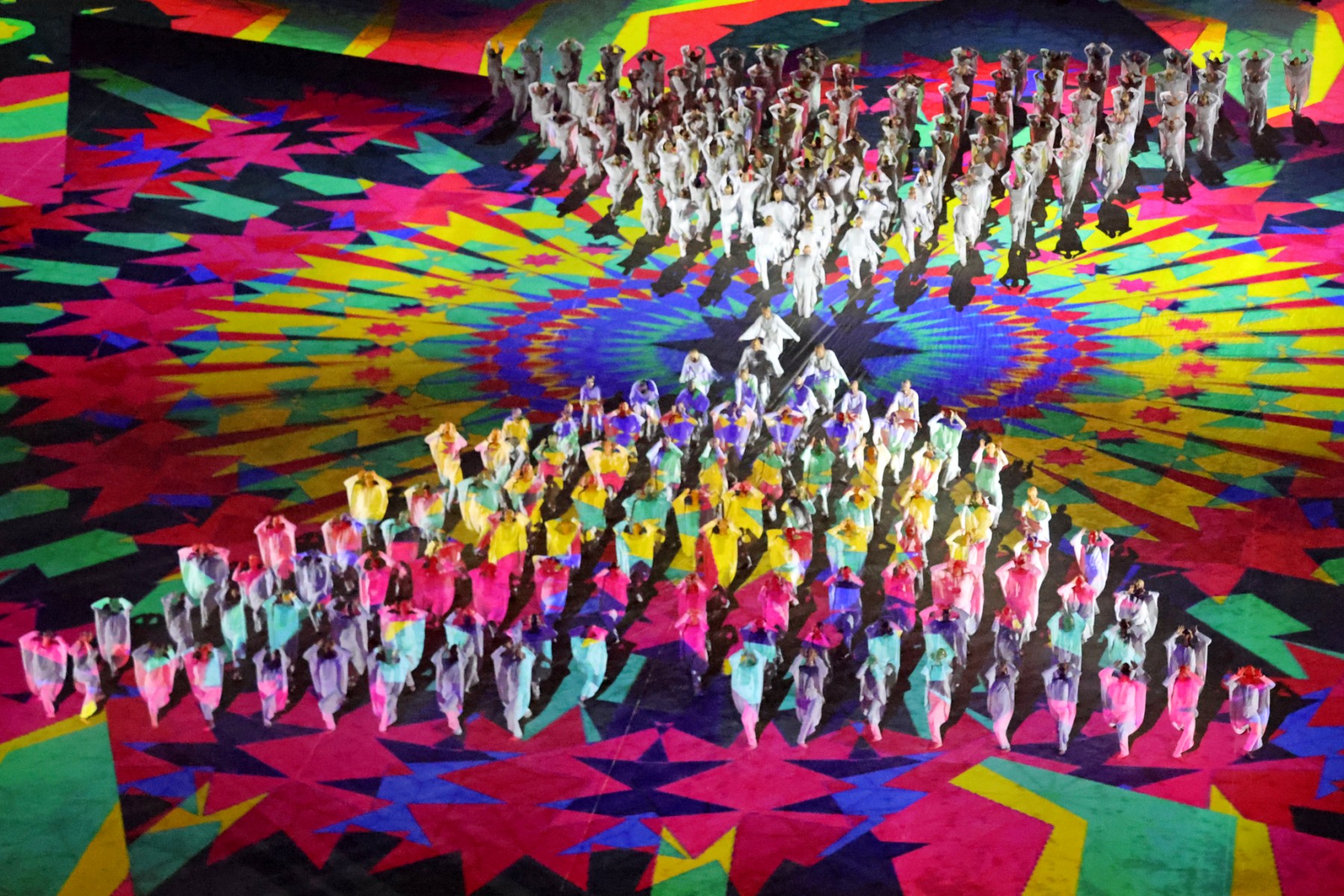 Dancers perform during the opening ceremony of the FIFA Arab Cup 2021 at the Al-Bayt Stadium in Al-Khor on November 30, 2021, ahead of the group A football match between Qatar and Bahrain. (Photo by Khaled DESOUKI / AFP)