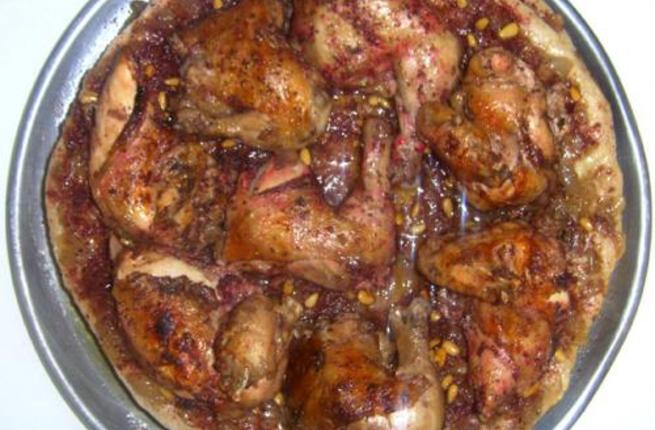 "Msakakhan" - A Palestinian specialty, best eaten in winter cause of its comfort-food properties: This indulgent, stodgy, affair is enjoyed uninhibitedly with hands for the full experience. Layers of oil-soaked bread with chicken, pine-nuts, onions and Sumac spice. This favorite Palestinian dish offers a tart kick through its Sumac flavor.