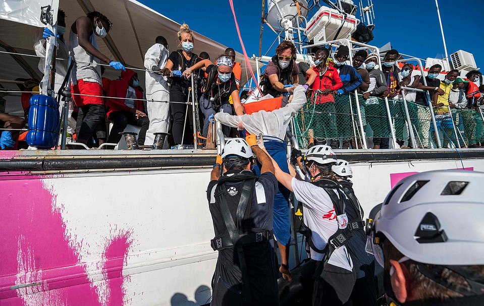 A huge, bright pink yacht emblazoned with Banksy’s art rescued people who set off from North Africa and were found distressed in the Mediterranean Sea.