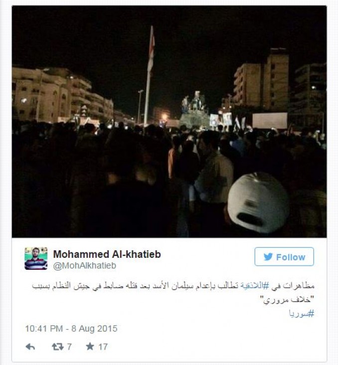The Britain-based Syrian Observatory for Human Rights reported that more than 1,000 protesters bearing pictures of Shaikh filled Latakia streets calling for the execution of Suleiman Assad. (State media - likely conflicted - didn't report the traffic incident, the shooting, nor the demonstrations.)