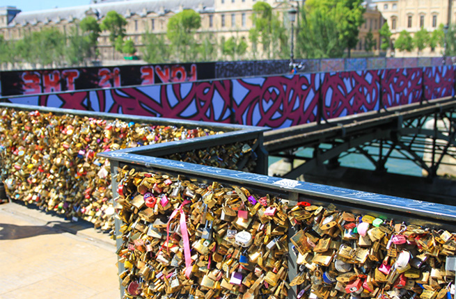 Last week, tons of romantic “love locks” were removed from the Pont des Arts Bridge in Paris due to security concerns and replaced with eye-catching street art, including a vibrant mural by Tunisian artist eL Seed. It’s an interim exhibition while the bridge awaits new siding - not likely to be dismantled until after summer. Paris will always be the “City of Love,” even stripped of its famous love locks. Now it’s also emerging as the “City of Arabic Calligraffiti.”