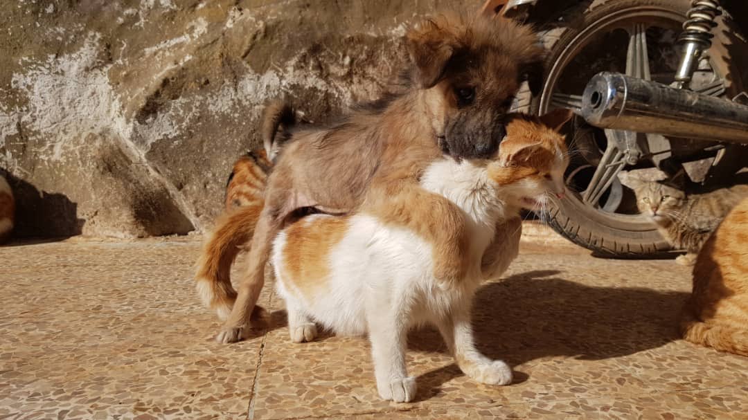 Mohammed Alaa al-Jaleel has created a shelter for all lost animals. (Twitter/@theAleppoCatman)