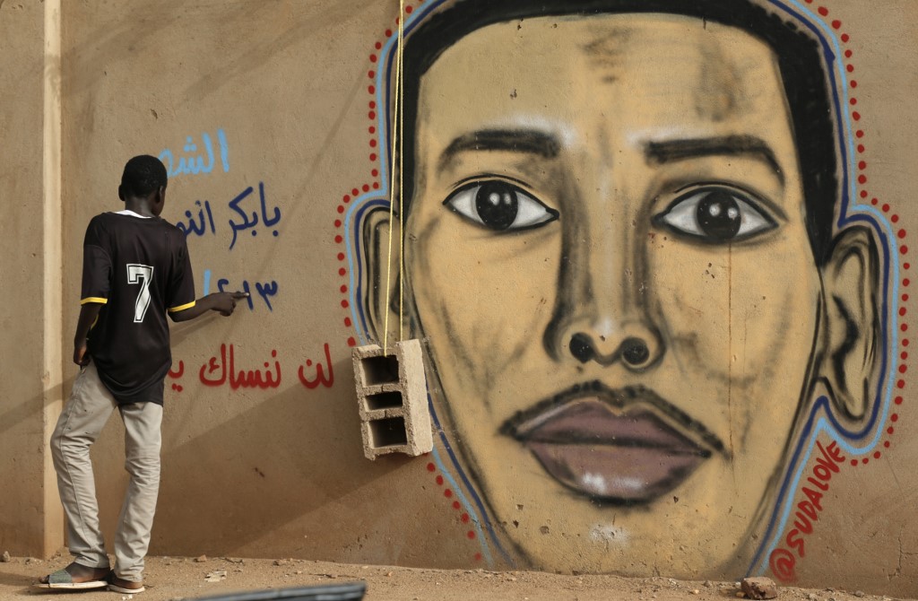 The portrait is part of a campaign launched by Sudanese artist Assil Diab to draw murals and graffiti to commemorate demonstrators killed in the months-old protest movement that has rocked the northeast African country.
