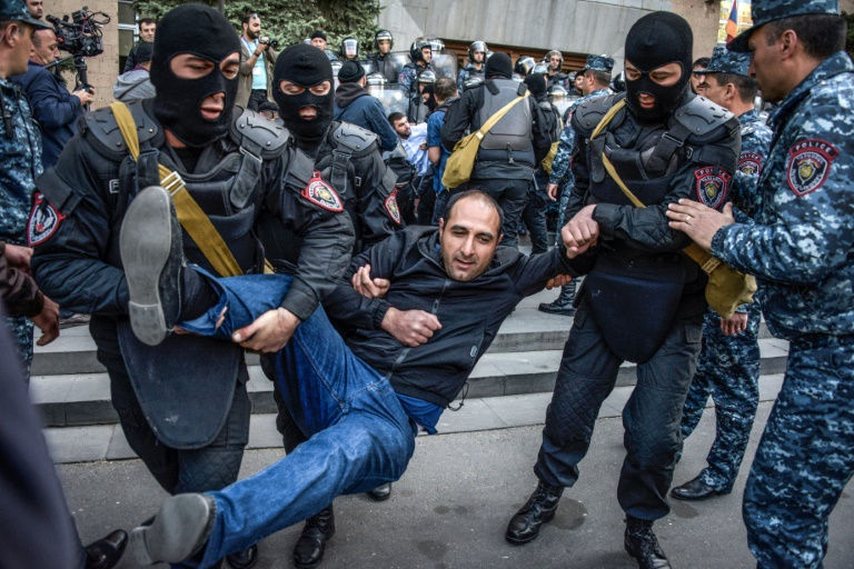 During mass protests in Yerevan against the ex-president's election as prime minister. Police detained hundreds of protesters  (AFP/File Photo).