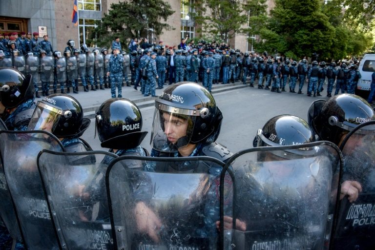 During mass protests in Yerevan against the ex-president's election as prime minister. Police detained hundreds of protesters (AFP/File Photo).