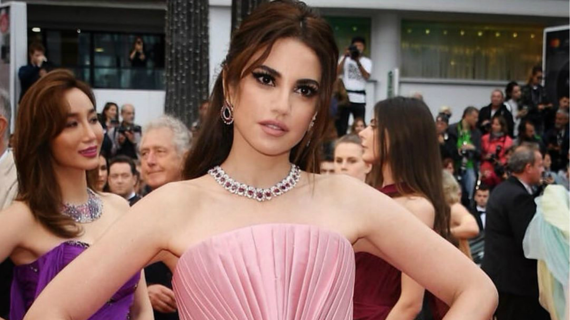 Dorra Zarrouk's looks at Cannes 2019 Cannes Film Festival were very bright, and one of them was a modern vibrant design by Lebanese designer Jean Louis Sabaji.