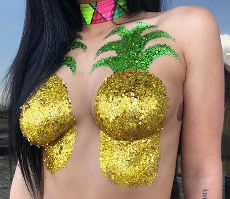 It has become popular to put glitter and gemstones on breasts as well. While some use glitter above their chests, others use it in place of tops and bras. Women are getting very creative when it comes to how they are adorning themselves with the new craze.