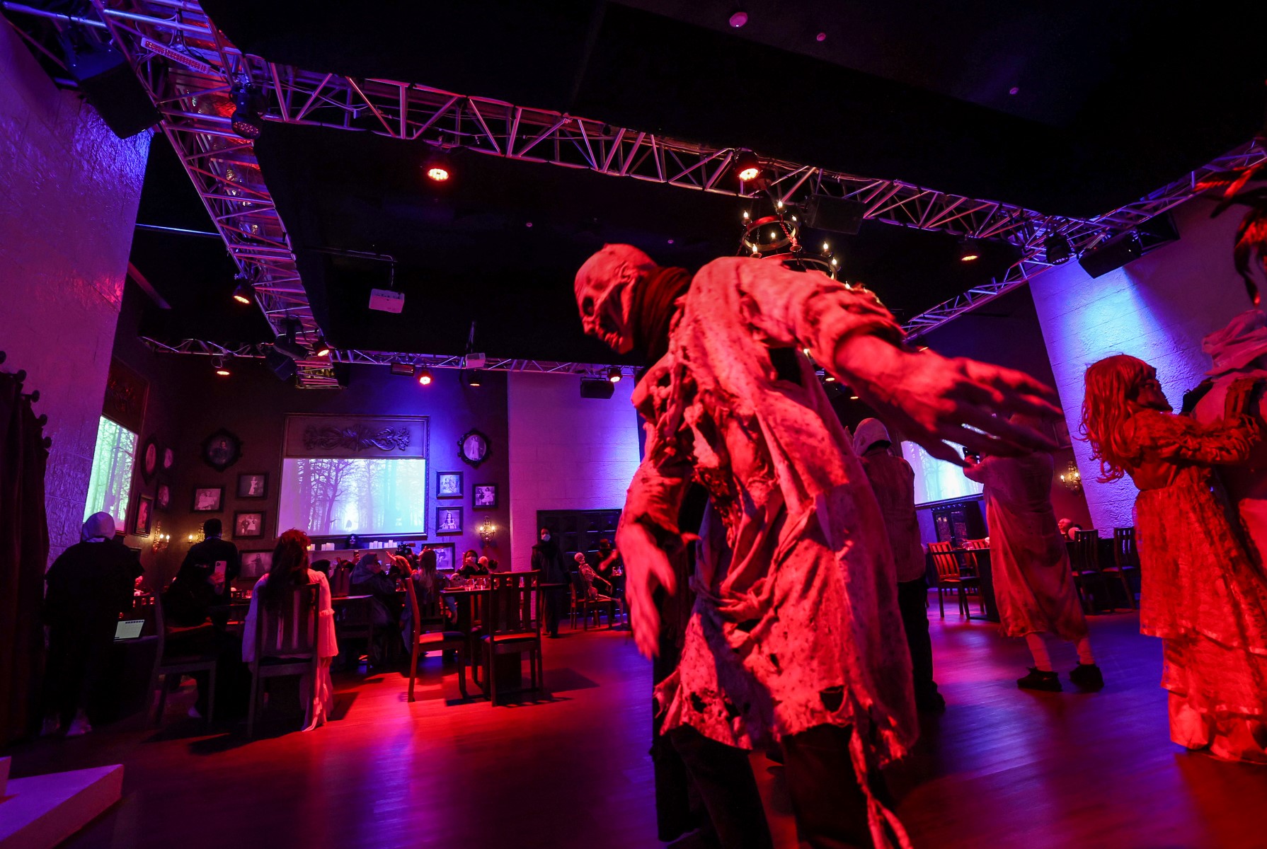 Saudi restaurant, "Shadows", caters to horror film buffs with strong stomachs, allowing them to savour their dishes while staff in gory costumes put on interactive shows.