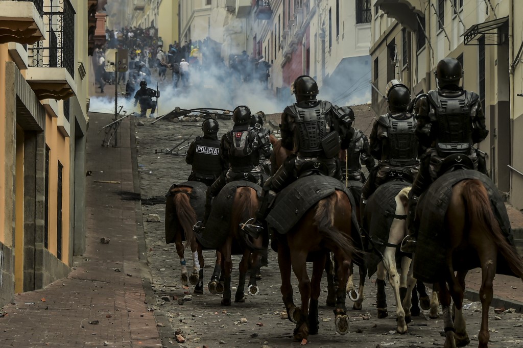 Fierce clashes started between police and protesters outside the parliament building in Quito, the capital of Ecuador, after almost one week of rallies. It prompted President Lenin Moreno to impose a curfew.