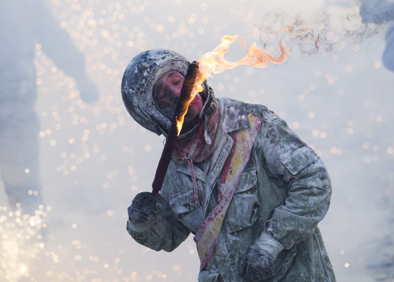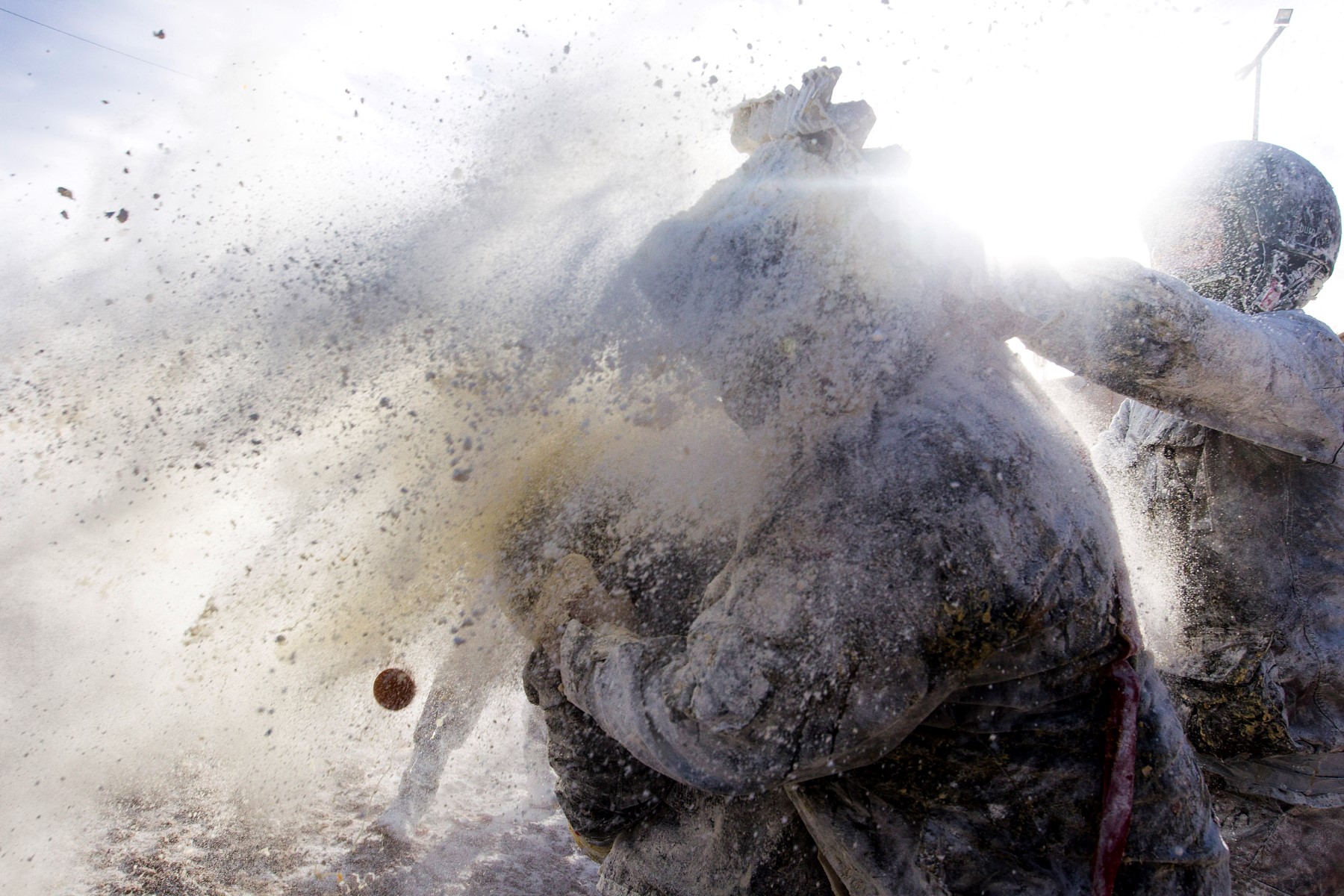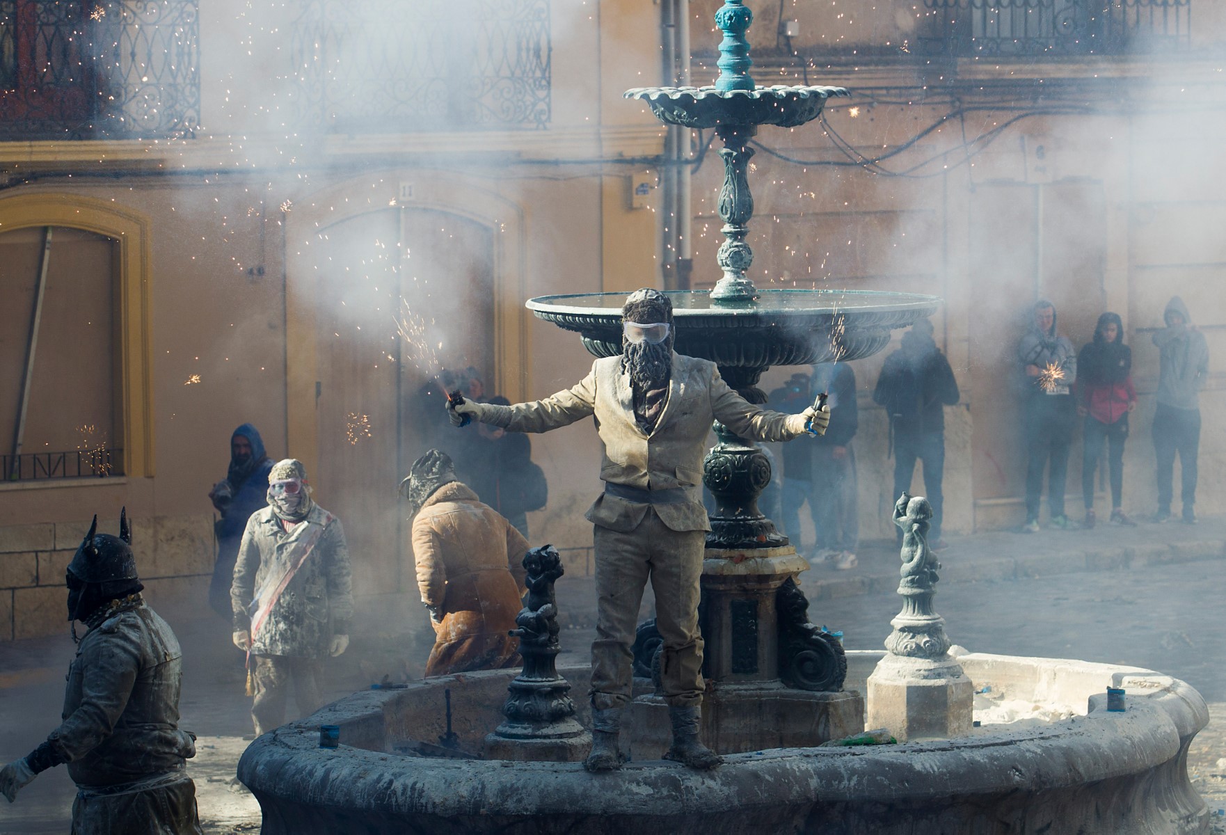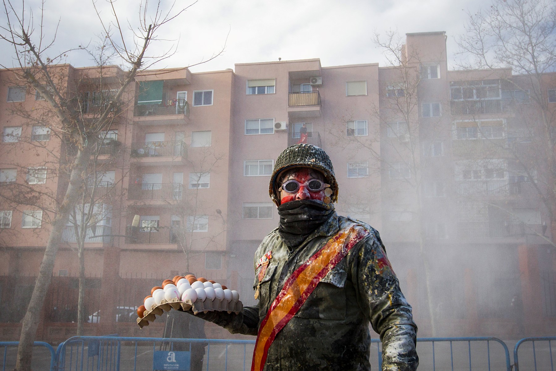 Spain's "Els Enfarinats" festival is a 200-year-old traditional event where participants wear military clothes and stage a mock coup d'etat as they battle using flour, eggs and firecrackers in the south-eastern Spanish town of Ibi.