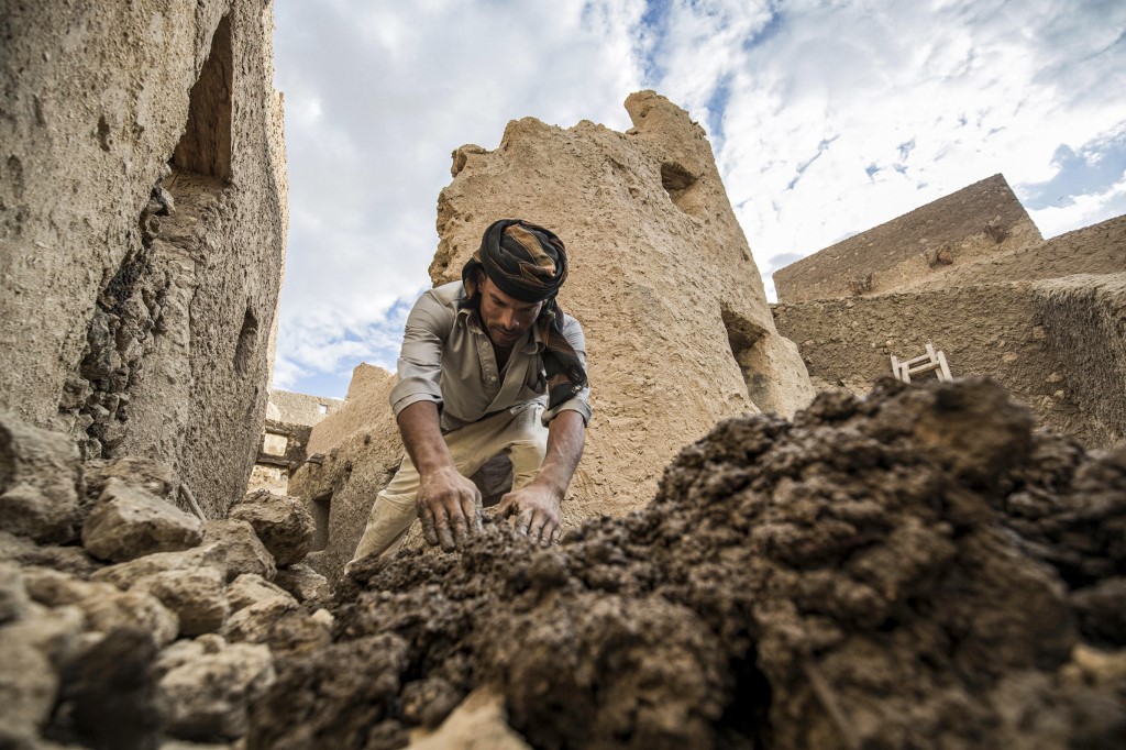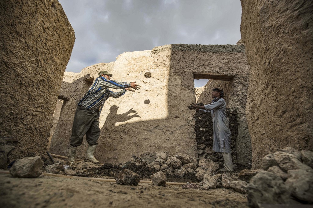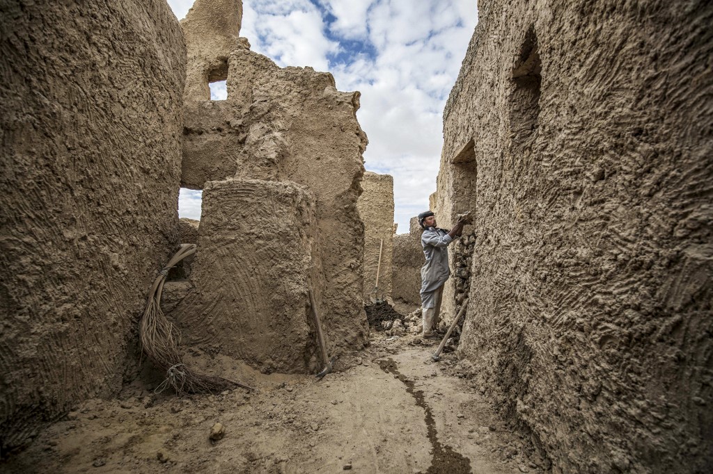 An Egyptian labouror works on the restoration of the fortress of Shali, in the Egyptian desert oasis of Siwa, some 600 kms southwest of the capital Cairo, on November 5, 2020. The 13th century edifice, called Shali or "Home" in the Siwi language, was built by Berber populations, using kershef, a mixture of clay, salt and rock which acts as a natural insulator in an area where the summer heat can be scorching. Khaled DESOUKI / AFP