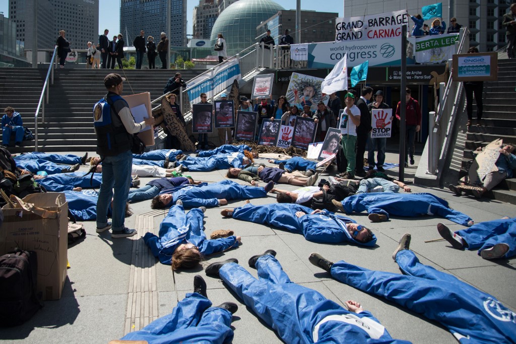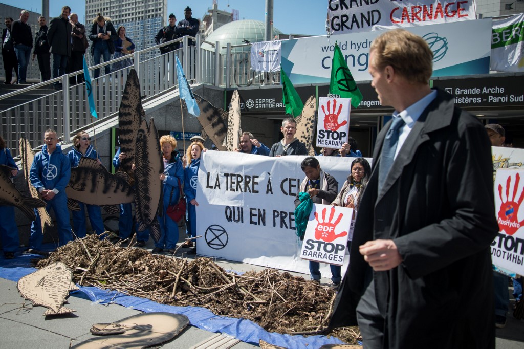 Environmental protesters have applied fake blood on Sunday on the steps of the Trocadero, in order to mark the accelerated loss of biodiversity on Earth, according to AFP journalists.