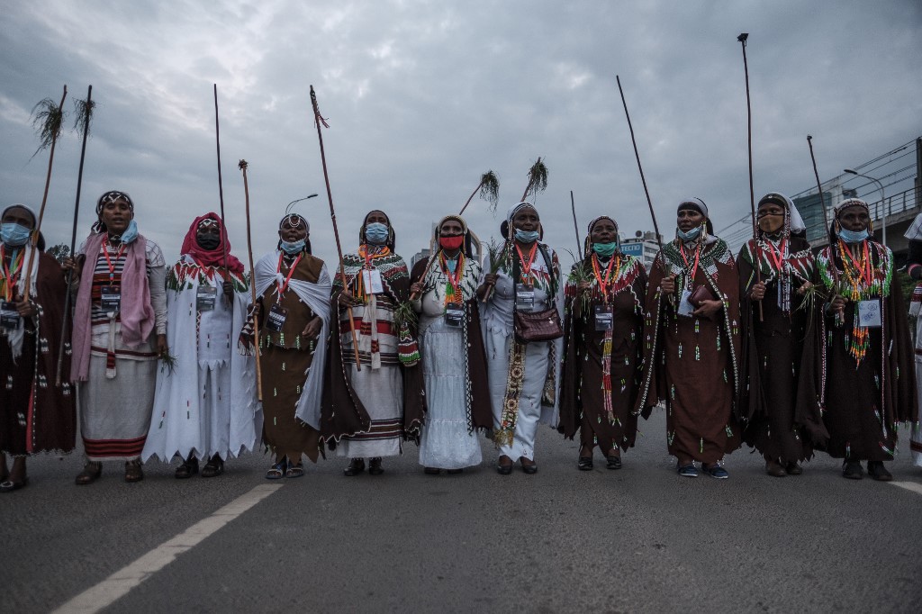 Ethiopia's largest ethnic group, Oromo, have celebrated in traditional clothing march the annual thanksgiving holiday, in Addis Ababa.