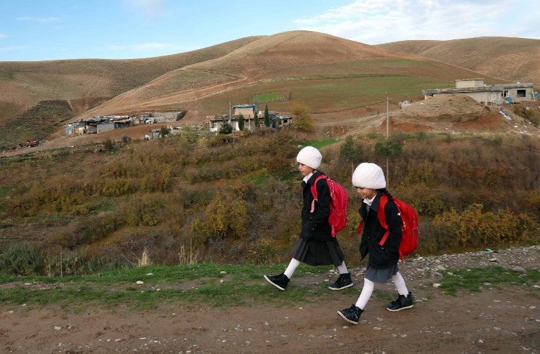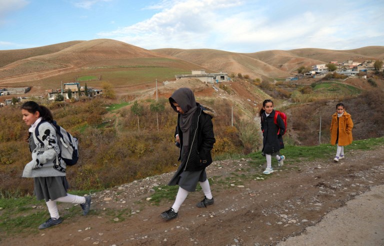 Young girls walk to school in Sharboty Saghira, a small village east of regional capital Arbil. SAFIN HAMED / AFP